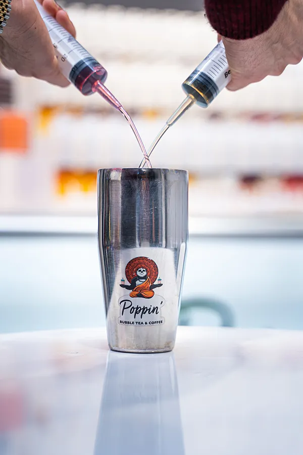 "Poppin' LAB" konsepti sizlerin hayal gücünü kısıtlamadan, sizleri menü ile sınırlamadan nasıl memnun edebileceğimizi düşünürken ortaya çıktı. Burada tepsinizi alıp bardak boyutunu seçerek deney tüplerindeki süt bazlı tozlarla mı yoksa şırıngalardaki aroma veya pürelerle mi bir içecek hazırlamak istediğinize karar veriyorsunuz. Daha sonra petri kutularında bulunan Poppin' Boba, Jelly veya Tapioca tercihinizi yapıp tepsiyi kasaya verdiğinizde içeceğinizin bazını seçiyorsunuz. Bizler burada yalnızca size ait olan tarifi hayata geçirip sizlere servis ediyoruz.